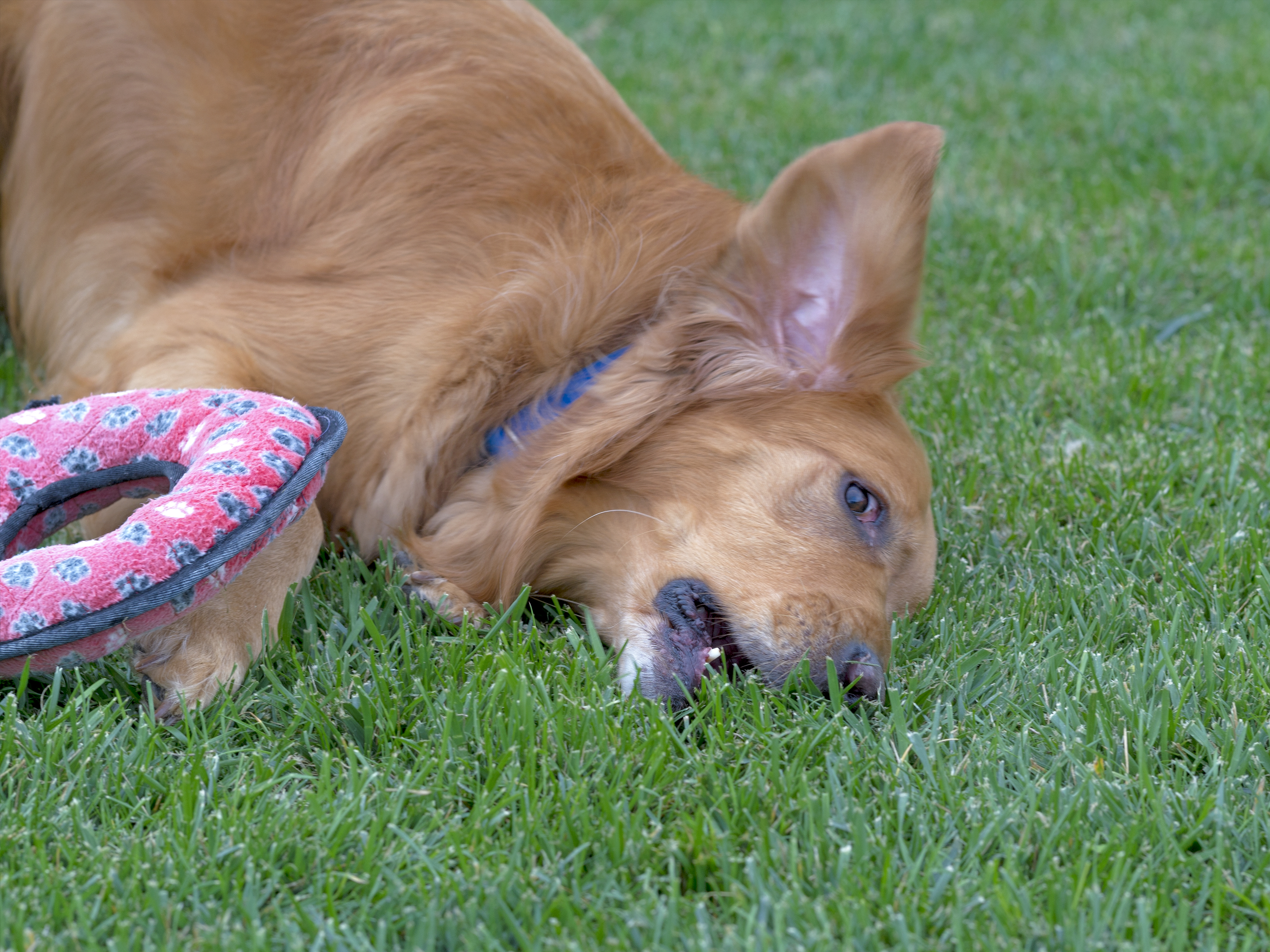 Walter is a sweet boy but never seemed at all interested in playing like most other dogs. Sometimes that’s just the way it is with some dogs. Their personality is mellow to the max and being a couch potato is all they aspire to. But I like to give every a dog a chance to do more so I was happy to have ‘Spresso here to show other dogs how it’s done. ‘Spresso is a happy boy who likes other dogs and likes to play. He’ll tear around the yard for the pure joy of running.